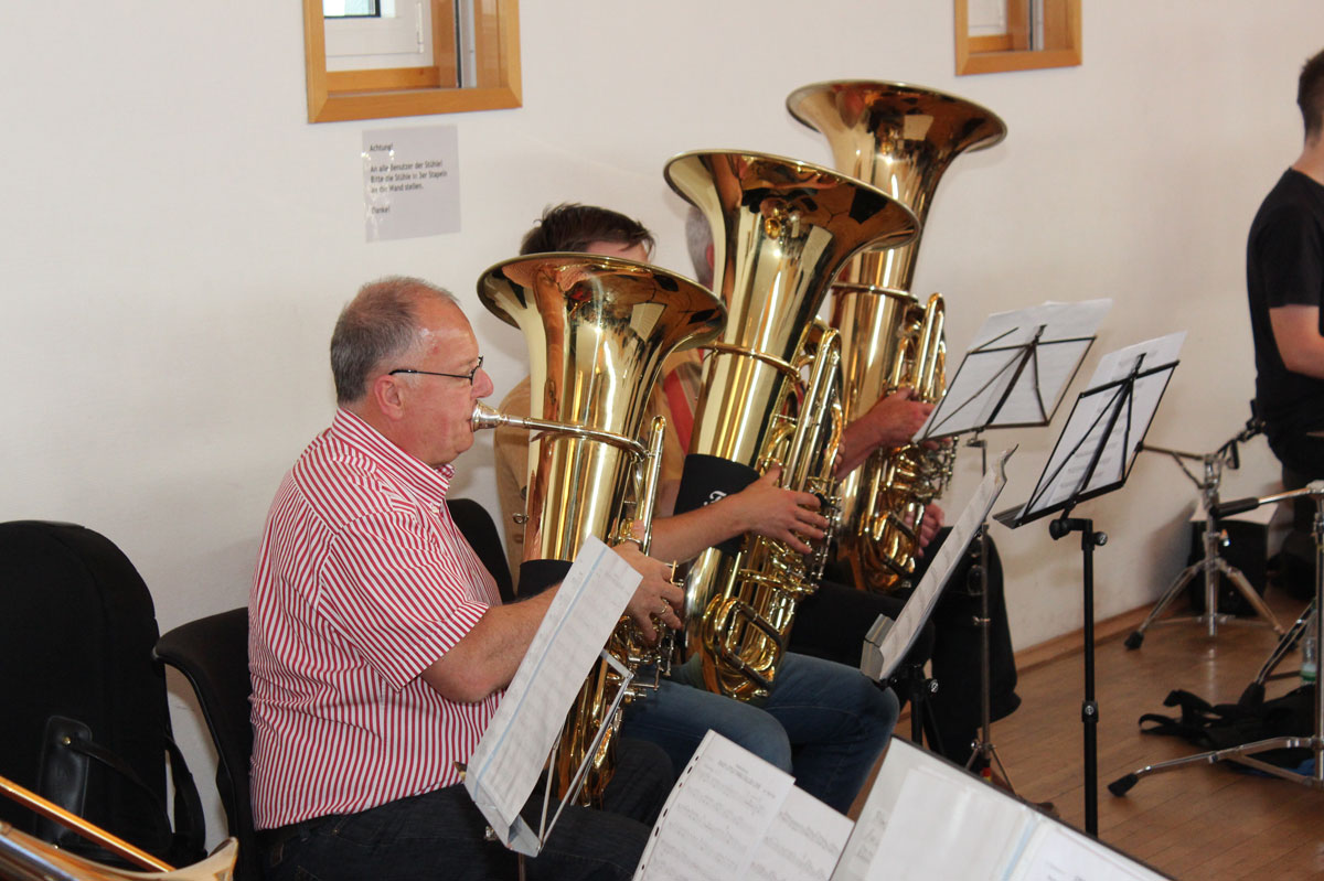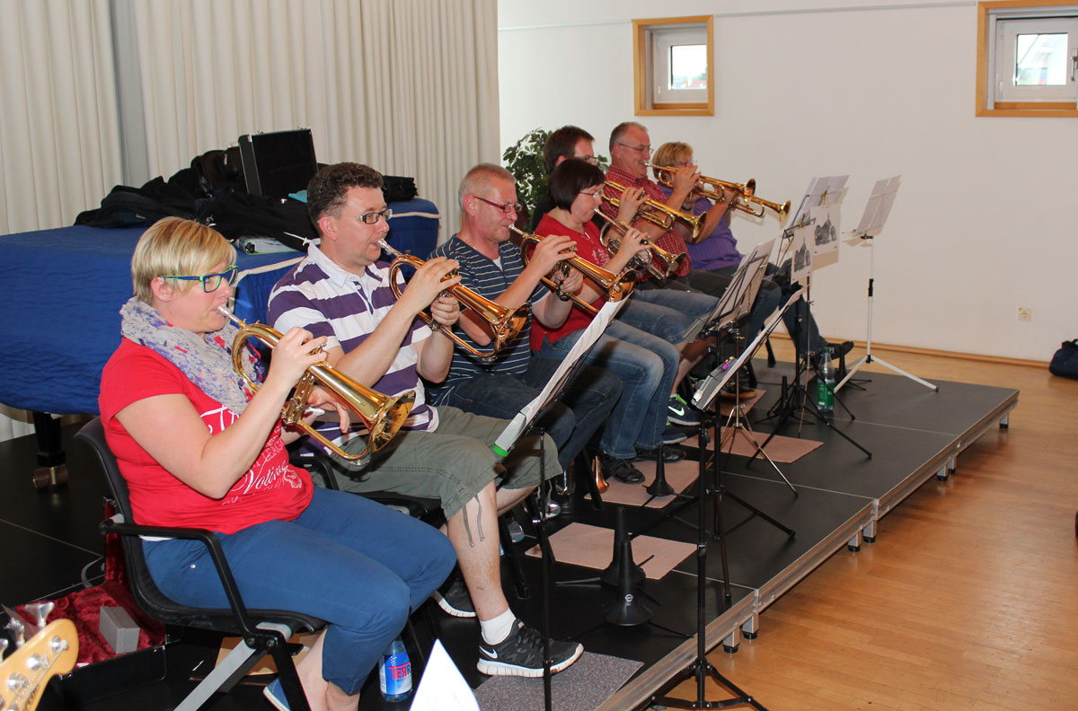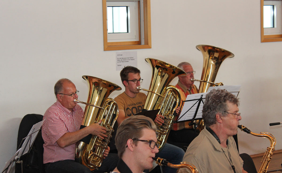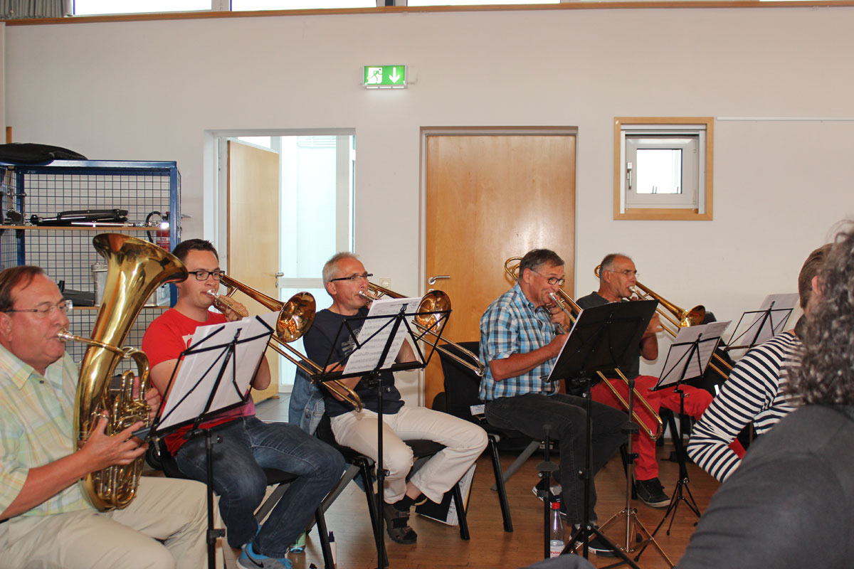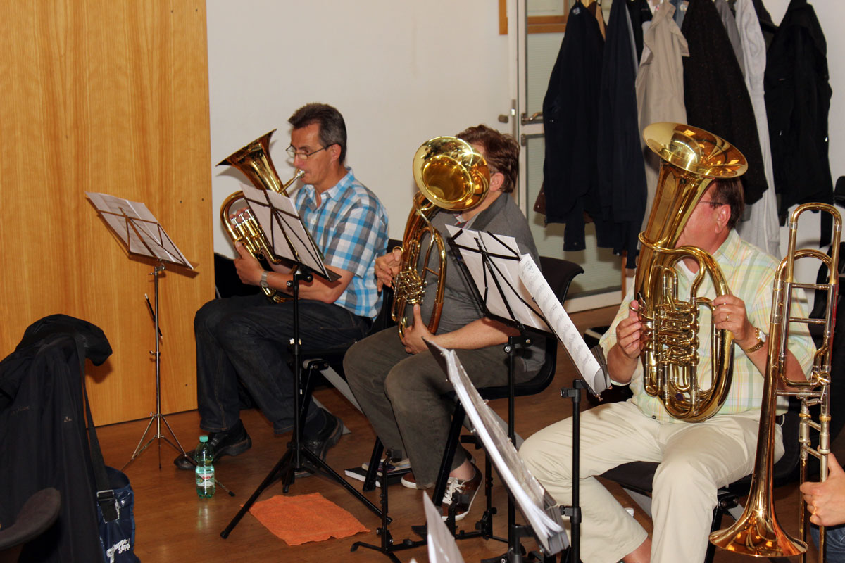 Das Große Blasorchester und das Endlisch Musigg Orchester probten gemeinsam für ihren anstehenden Auftritt beim Dinjerhof-Konzert im Juli 2014.